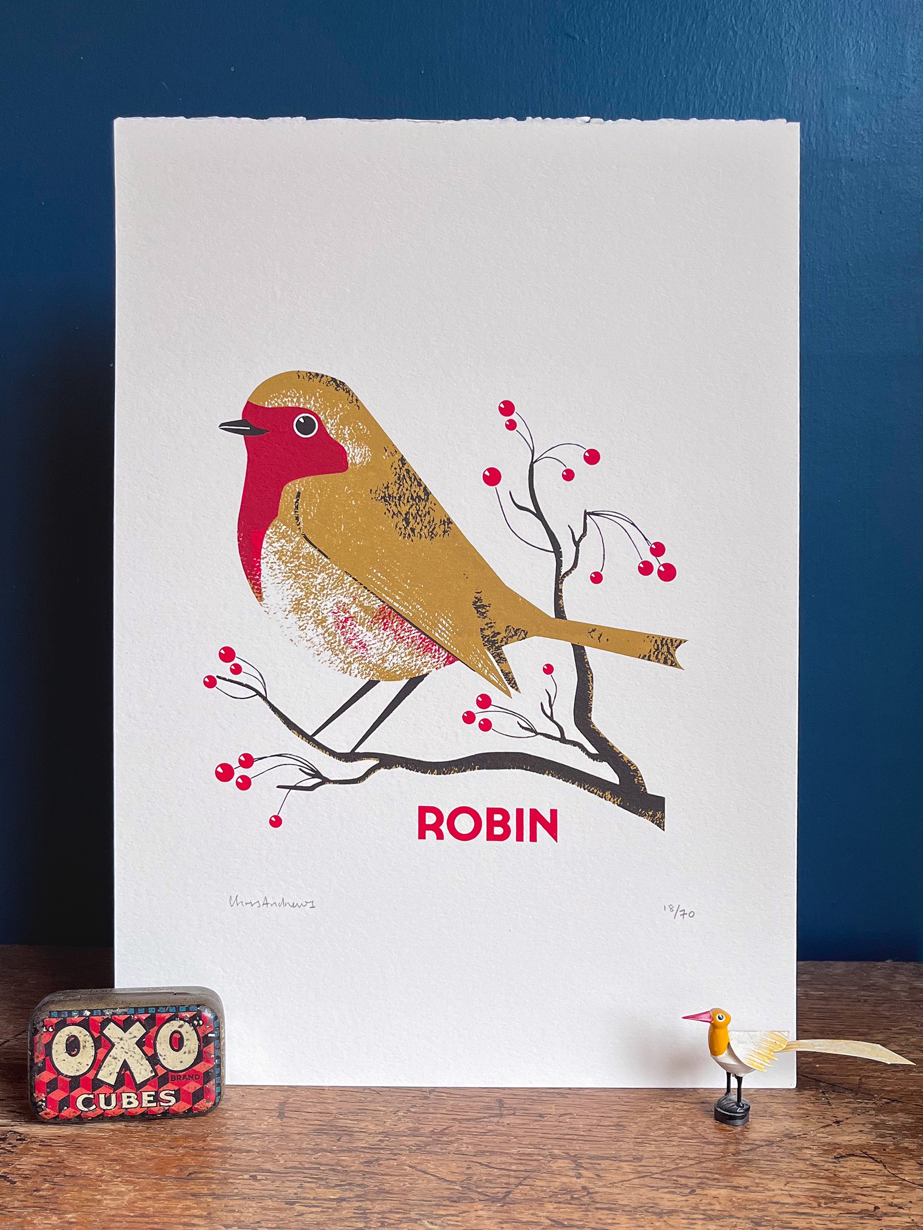 The UK's favourite bird - with its bright red breast it is familiar throughout the year and especially at Christmas! Males and females look identical, and young birds have no red breast and are spotted with golden brown.